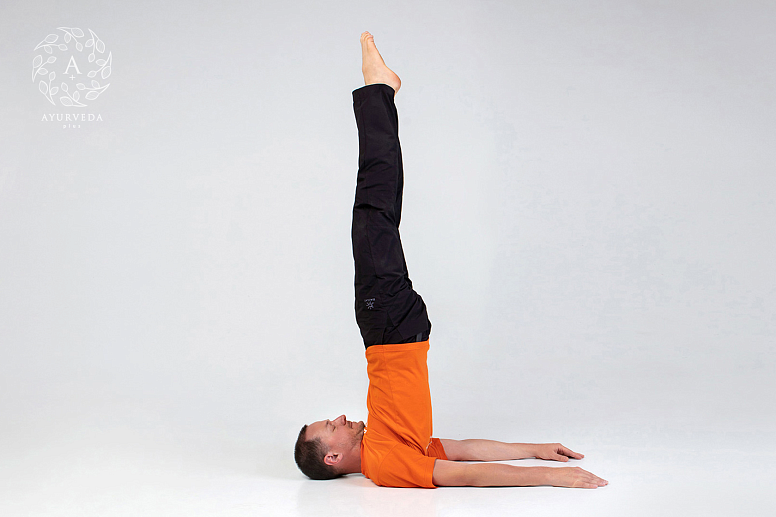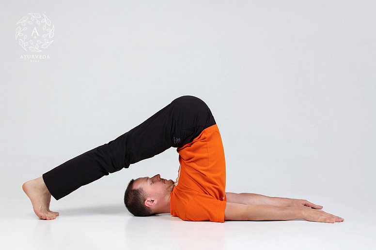 Lie on your back. Relax the muscles of your lower back, release any tension in the sacrum and hips. If your digestion is sluggish, this pose will strengthen and stimulate it, which is always relevant for Kapha constitution.