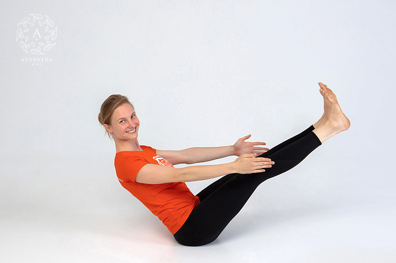 - as you inhale raise your arms and legs simultaneously, tilting your body back. In Ardha Navasana, lift bent legs rather than straight;