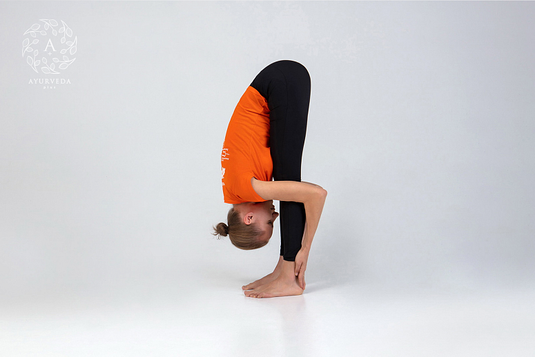 - if the asana is not yet mastered completely, bend your legs slightly; it is important to feel the stretch in the backs of your thighs, but never in the lower back;